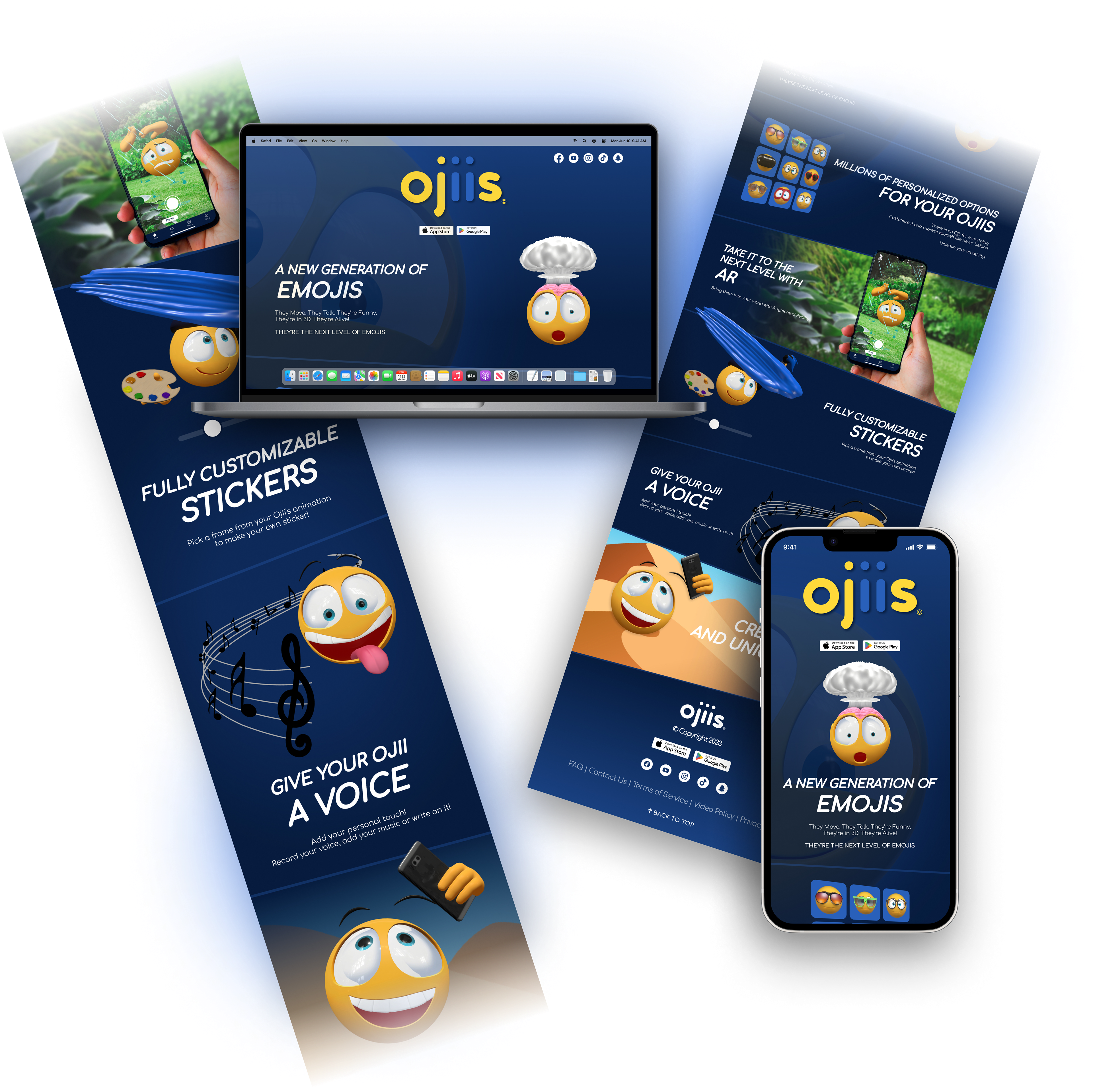The Ojiis website was optimized for both desktop and mobile platforms, ensuring a seamless and engaging user experience across devices while maintaining the brand's vibrant and playful identity.